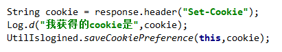 Once we’ve obtained the cookies through this method, the next step is to save them. I’ll write a static method to store the cookie in SharedPreferences, with the design principle of minimizing database operations.