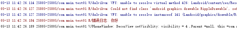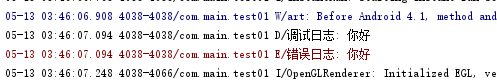 This app simply outputs a debug log and an error log, but their visibility differs between real devices and emulators.