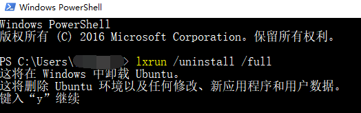 If you want to uninstall the Ubuntu subsystem, you can enter lxrun /uninstall /full in PowerShell. Remember, this is not in the Linux command line: