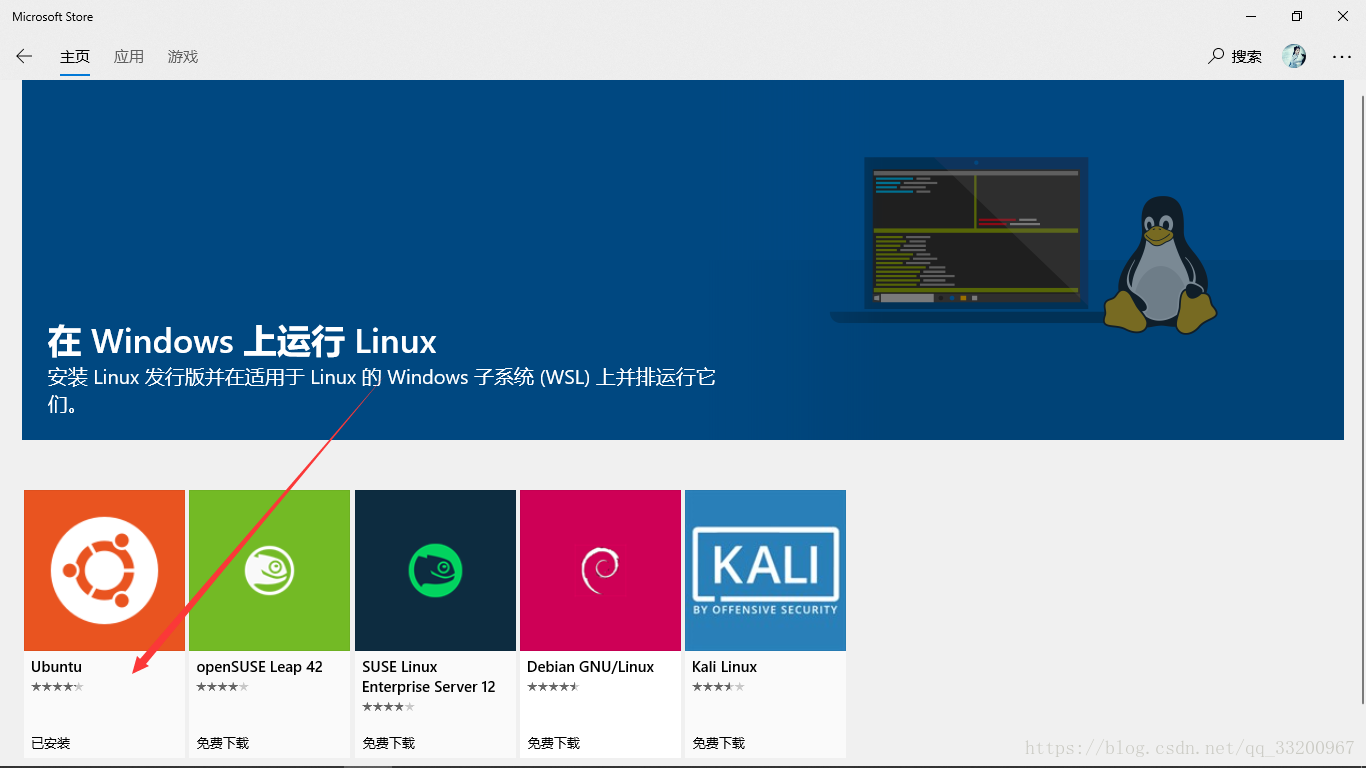 Then select “Ubuntu” and click to enter. Since the author has already installed it, it shows “Installed” here. If not installed, it should show “Free Download”. Then click to get and install: