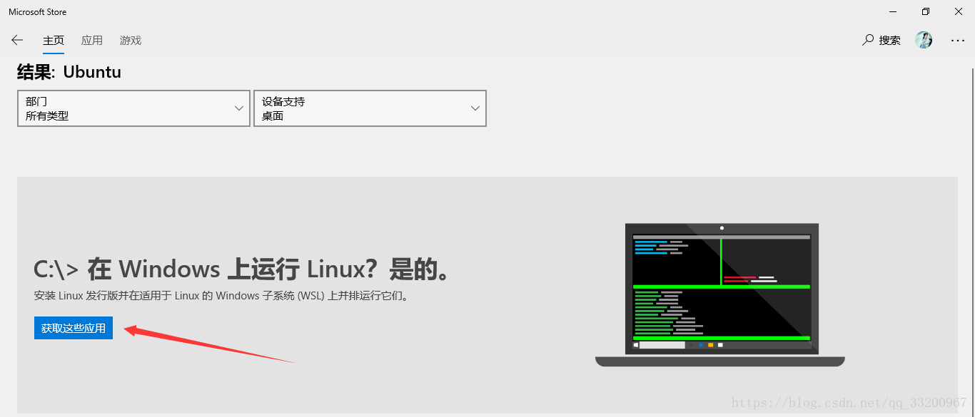 Then, search for “Ubuntu” in the Store. You can get the following results. Click “Get” to obtain these applications and proceed to the next page: