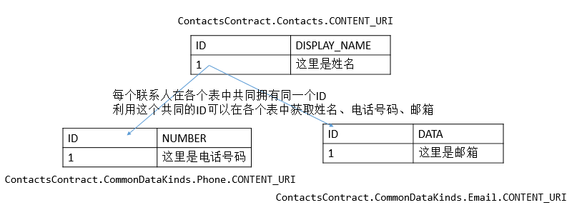 * 通过这个ID可以在ContactsContract.CommonDataKinds.Email.CONTENT_URI 找到该联系人的邮箱