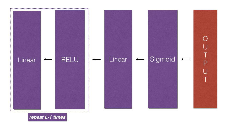 构建一个 该该 具有以下结构的L层状神经网络:[LINEAR→RELU] * (L-1) - > LINEAR - > SIGMOID
