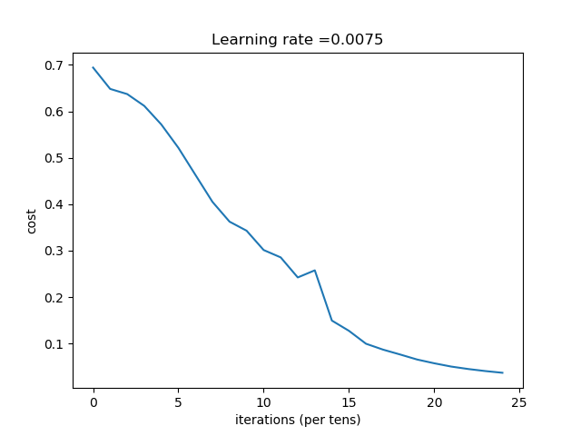 def L_layer_model(X, Y, layers_dims, learning_rate=0.0075, num_iterations=3000, print_cost=False):