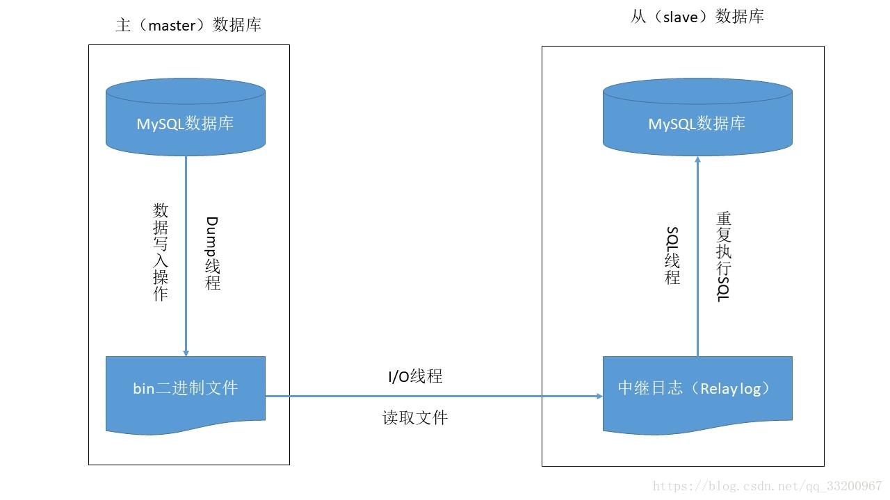 - The master database starts the binary log (binlog), which has a Dump thread. This thread records all write operations of the master database into the binary log file.