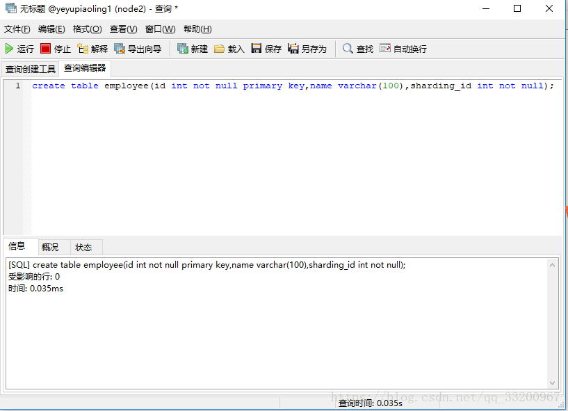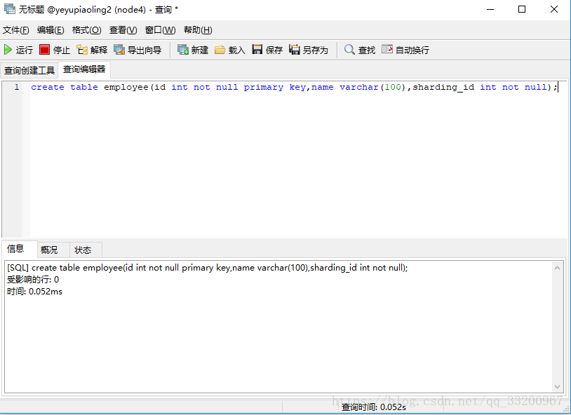 然后在node4的yeyupiaoling2数据库上创建一张employee表,同样的执行方式,就不重复介绍了。