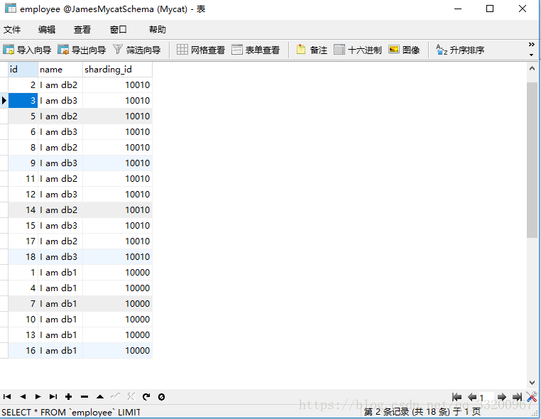 insert into employee(id,name,sharding_id) values(18, 'I am db3',10000);