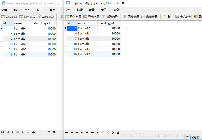 insert into employee(id,name,sharding_id) values(1, 'I am db1',10000);