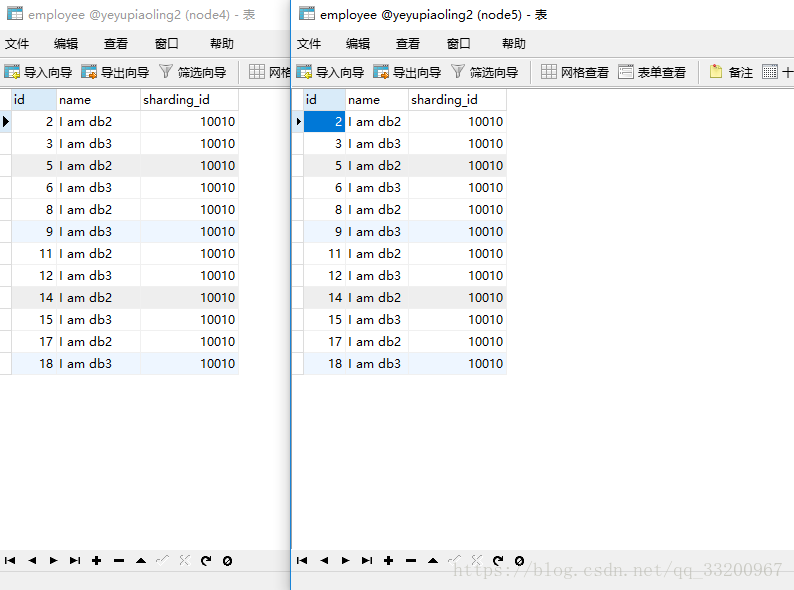 insert into employee(id,name,sharding_id) values(11, 'I am db2',10010);