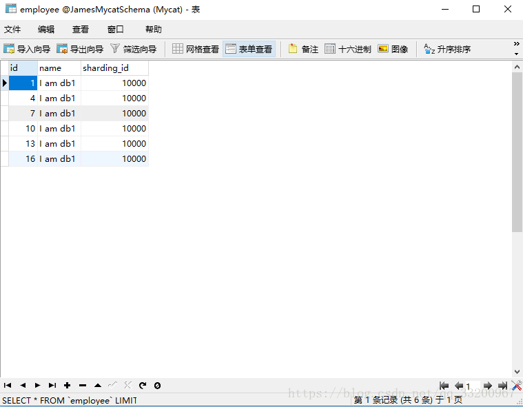 在Mycat中可以可以看到employee表已经插入的全部数据。
