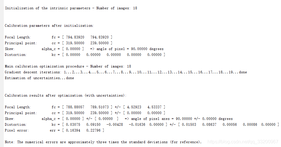 执行上一步之后会输入以下信息,这次产生就是我们测距算法所需的参数,不同我们还可以对这些参数进行优化。