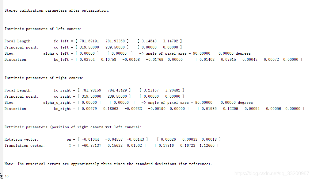 Rotation vector: om = [ -0.01044 -0.04553 -0.00143 ] [ 0.00026 0.00033 0.00018 ]