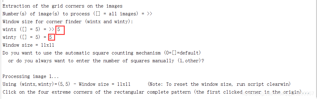 执行上一步之后,需要回到命令区,需要对接下来的标定做好配置。其他基本可以默认,直接回车就好,有两个参数需要更加推荐输入,读者可能跟我的不一样。
