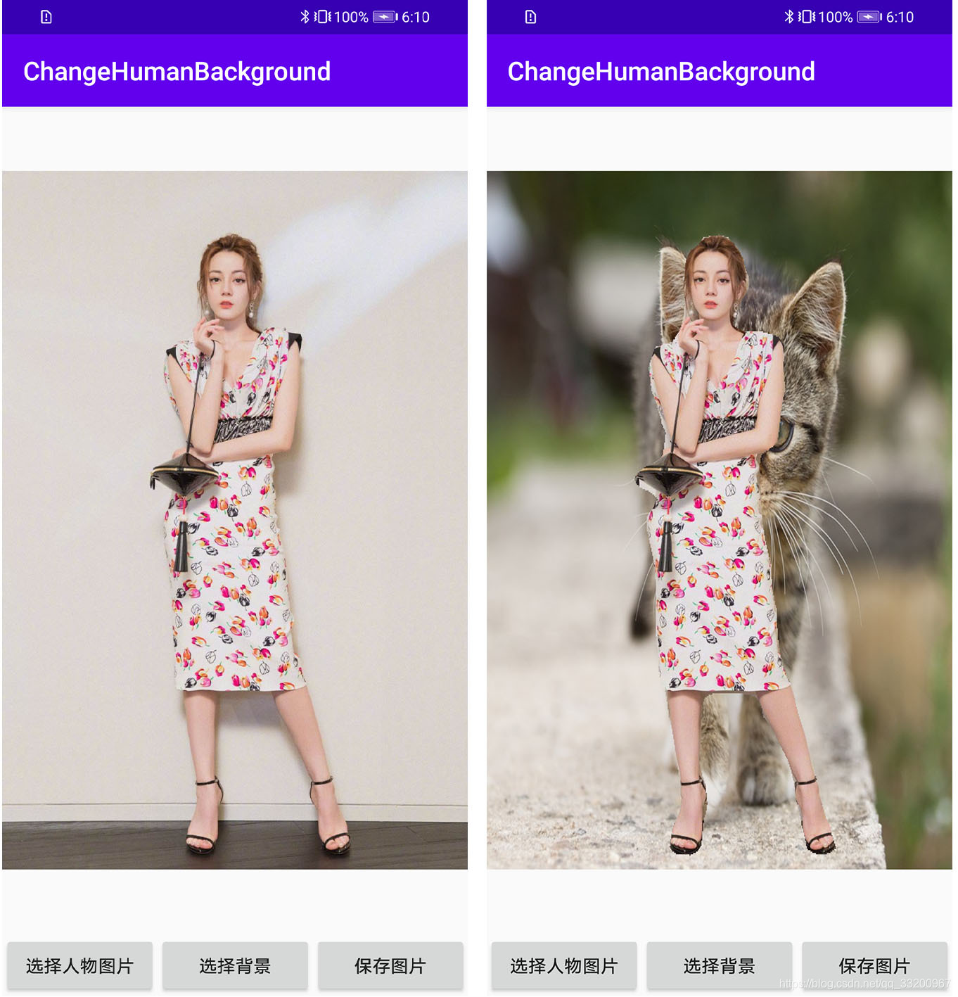 Finally, implement background replacement by combining the human image and the background image: