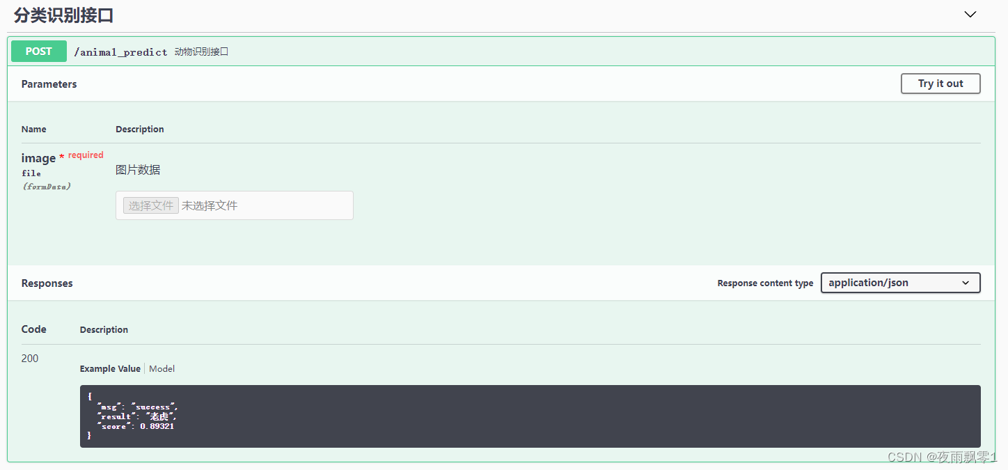 server.pyis provided, which uses Flask to offer a web interface. Android applications can call this interface to implement animal recognition.