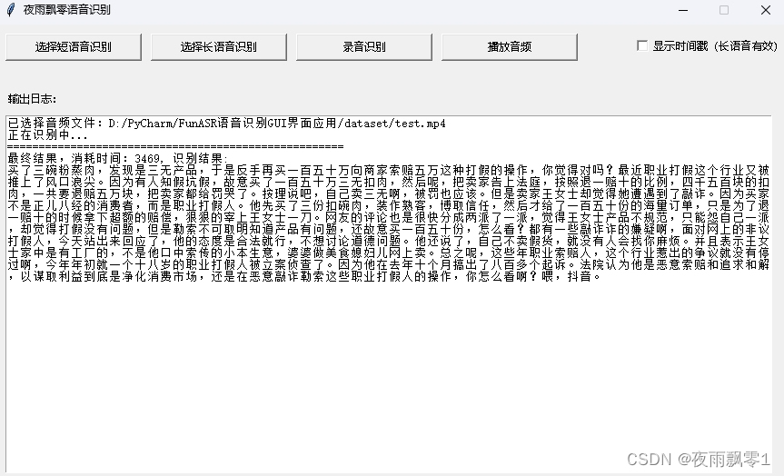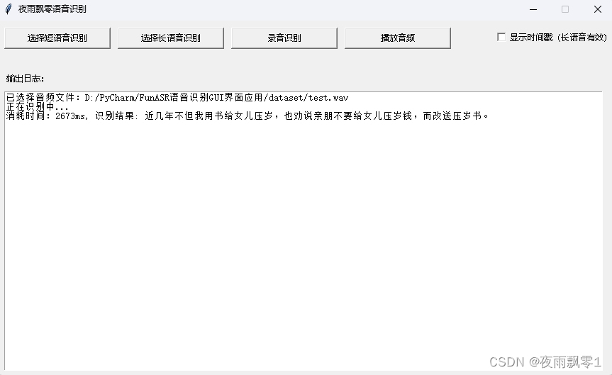 This article introduces a voice recognition interface application developed based on FunASR. This application allows selecting local audio or recording for recognition. It supports multiple audio and video formats, and can add timestamps to recognition results to create subtitles.